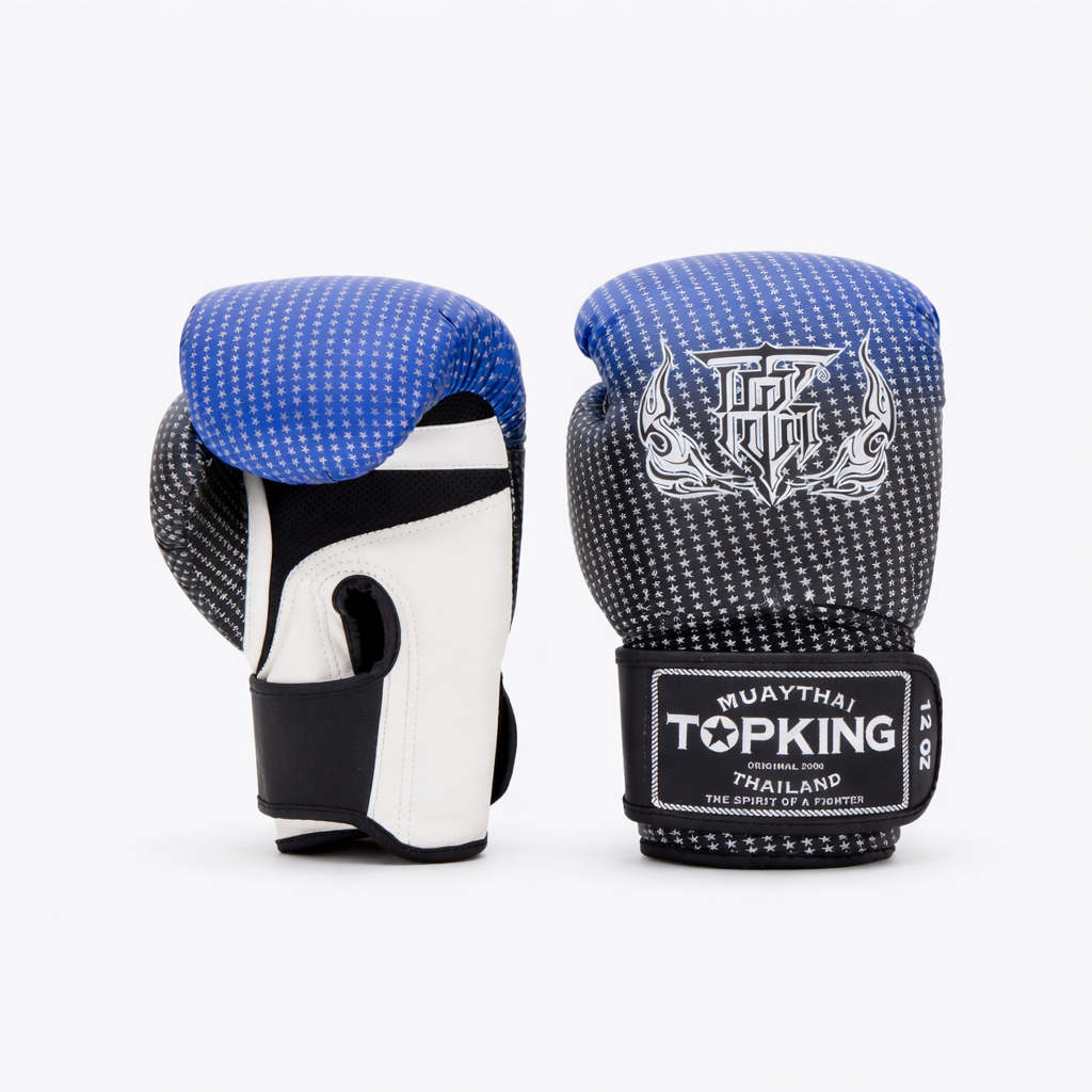 TOP KING SUPER STAR „AIR” to rękawice, które łączą wysoką ochronę, komfort termiczny i unikalny styl. Jeśli szukasz modelu premium do Muay Thai, kickboxingu lub boksu, który sprawdzi się podczas intensywnych treningów, ten model będzie doskonałym wyborem.